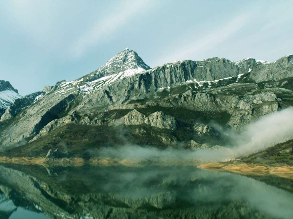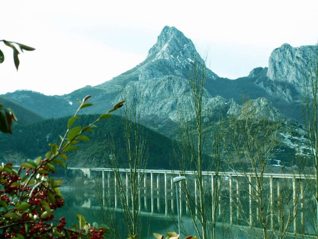 La línea de cordales del Pico Redondo (2012m) ó Sierra de Riaño. Debajo, una pequeña parte del embalse. |