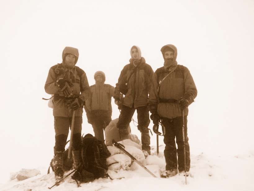 Histórica foto de cumbre [2]: de izqda. a dcha. David, Juanbe, un servidor y Zapata Solamente una corrección para los estudiosos: aquello no era la cumbre en realidad, |