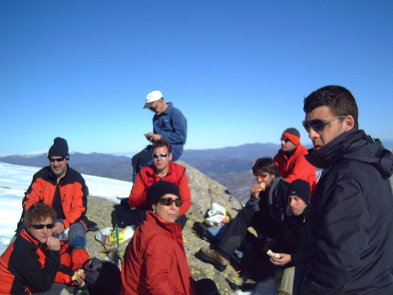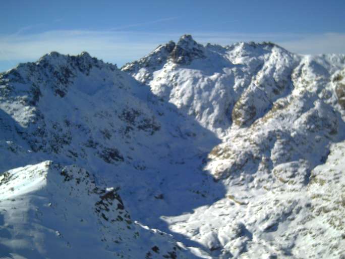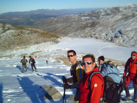 Esta salida la hemos realizado en "estilo libre", o sea, algunos utilizamos crampones, otros raquetas, y un par, esquíes de travesía.