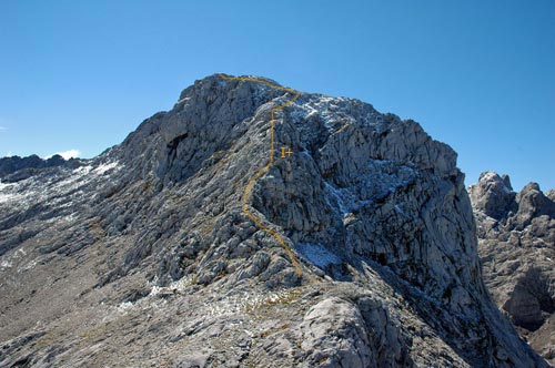 realiza por toda la cresta. Es una trepada fácil, algo expuesta, que se
