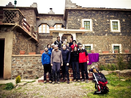 Ascendemos por la cara sur para acometer la cresta por su lado oeste y descender por la cara norte donde nos recogerá la furgoneta que nos llevará a Zawita Ahanzal, población de la montaña del Atlas central para pasar noche en Albergue. De camino podremos contemplar la impresionante cara norte del Aroudan (3200 m). Aunque todos conseguimos llegar a su antecima, el guía no nos animó a llegar a la cima (bueno nos dijo que esa era la cima, cuando no lo era) porque había hielo y no llevábamos cuerdas para encordarnos. Así que sólo los más agerridos alcanzaron la cumbre.
