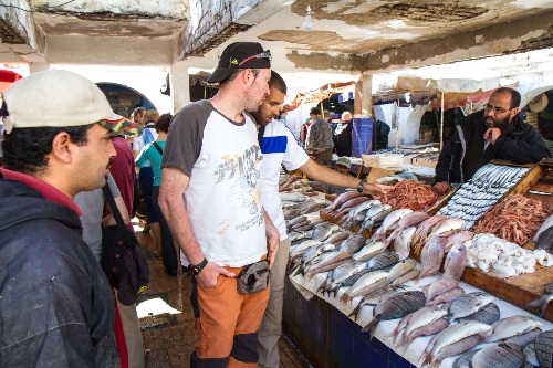 Después de este último gran desayuno, tomamos el minibús rumbo a Marrakech algunos, y los que ya lo conocíamos preferimos optar por visitar Essaouira. Una pequeña ciudad fortificada bañada por el Atlántico y situada a 180 km al oeste de Marrakech. Essaouira fue declarada patrimonio de la humanidad en 2001 y tradicionalmente ha recibido nombres como La perla del Atlántico o La Bella Durmiente. En el mercado se puede comprar pescado fresco y degustarlo allí mismo