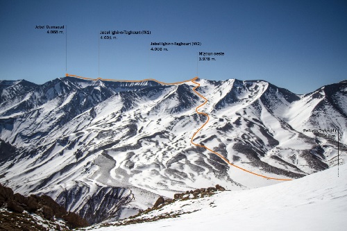 27 de marzo - Agouti / Cumbre del Azourki ( 3650 m)/ Zawita Ahalzal (1635 m) Etapa alpina - 1300 m_ 1300 m_ 7 horas